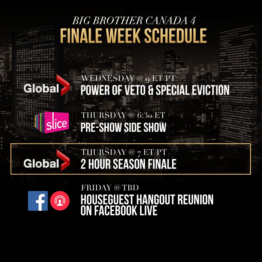 Big Brother Canada On Twitter Bbcan4 Finale Week Schedule Https T Co Chuv8aqyvx Twitter
